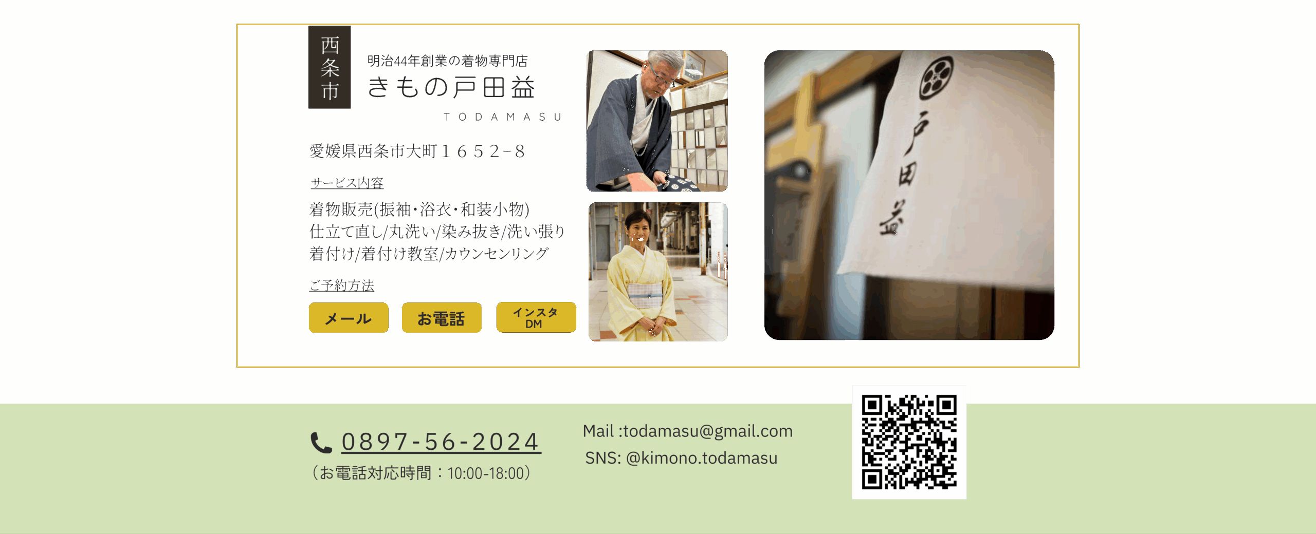明治四十四年、愛媛県西条市にて創業した戸田益は、三代にわたり“ほんまもん”のきものを大切にしてきました。